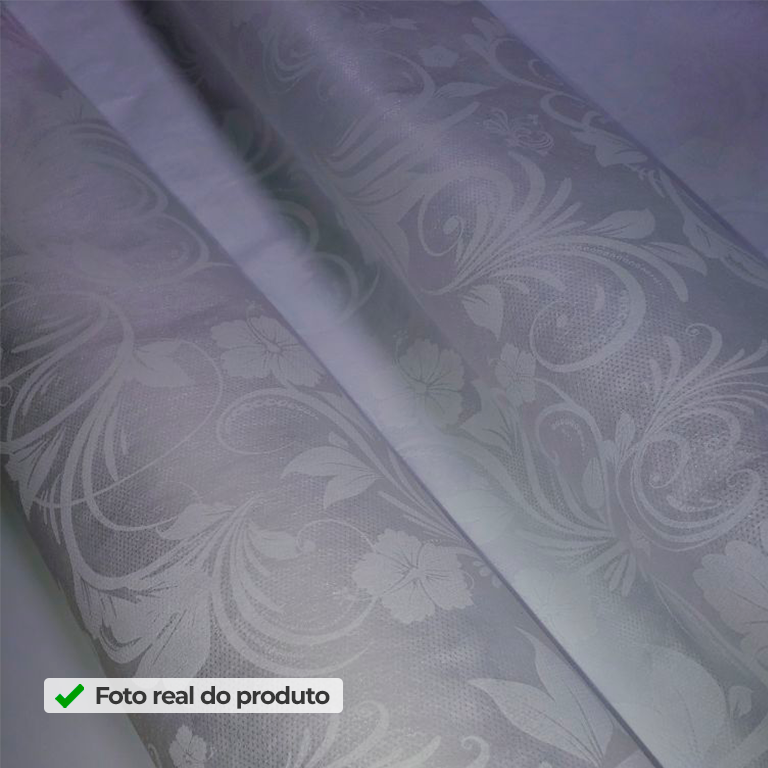 Quer criar uma decoração clara, elegante e com acabamento bem refinado? O TNT Estampado Devorê Floral traz uma estampa floral em branco sobre branco, com desenho suave e efeito discreto, tipo textura. Assim, você conquista um fundo clean que ilumina o ambiente e combina com qualquer paleta, perfeito para vitrines minimalistas, festas delicadas, cenografias elegantes e composições onde os detalhes fazem toda a diferença.
