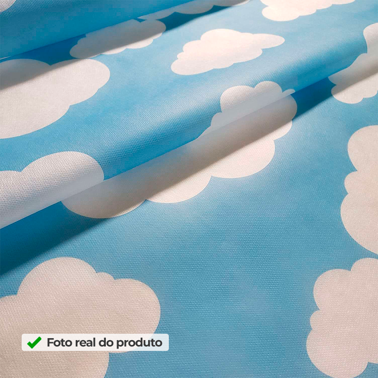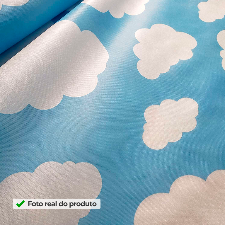 Além disso, o TNT Estampado Nuvem Baby Azul facilita o seu trabalho porque é leve, maleável e muito simples de manusear. Por isso, você aplica com rapidez em painéis de fundo para fotos, mesas decoradas, faixas, laços e recortes decorativos, criando cenários completos sem complicação. E quando você quer elevar o acabamento, o TNT Estampado auxilia: na padronização de embalagens, sacolas, caixas e lembrancinhas. Assim, deixando tudo mais organizado, caprichado e com visual profissional. Em outras palavras, você ganha praticidade na montagem e mais impacto na apresentação final — seja na decoração, seja nos detalhes.