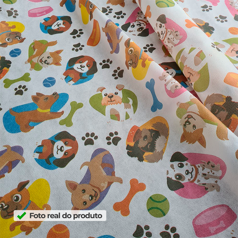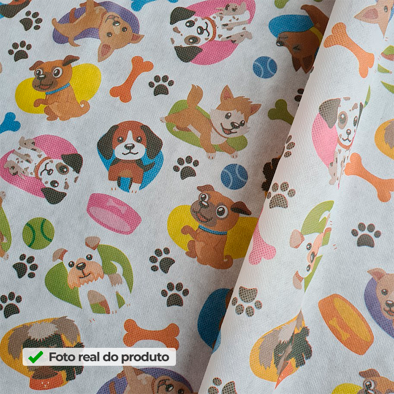 Além disso, o TNT Estampado Cachorrinhos facilita o seu trabalho porque é leve, maleável e muito simples de manusear. Por isso, você aplica com rapidez em painéis de fundo para fotos, mesas decoradas, faixas, laços e recortes decorativos, criando cenários completos sem complicação. E quando você quer elevar o acabamento, o TNT Estampado auxilia: na padronização de embalagens, sacolas, caixas e lembrancinhas. Assim, deixando tudo mais organizado, caprichado e com visual profissional. Em outras palavras, você ganha praticidade na montagem e mais impacto na apresentação final — seja na decoração, seja nos detalhes.